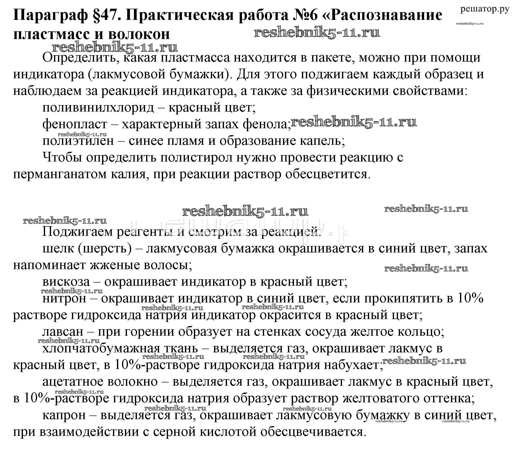 Готовая домашняя работа с ответами по Химии за 10 класс Рудзитис, Фельдман Учебник Просвещение 2014 ФГОС - Параграф 47 (Практическая работа 6) 1