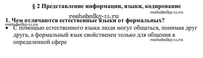 Готовая домашняя работа с ответами по Информатике за 10 класс Семакин, Хеннер, Шеина Учебник Базовый уровень Бином 2017 ФГОС - §2. Представление информации, языки, кодирование 1