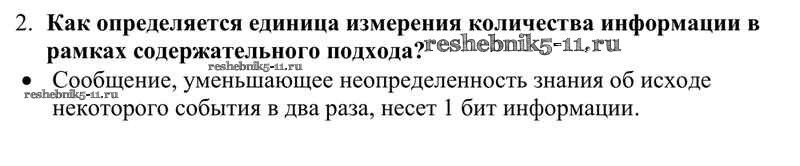 Готовая домашняя работа с ответами по Информатике за 10 класс Семакин, Хеннер, Шеина Учебник Базовый уровень Бином 2017 ФГОС - §4. Измерение информации. Содержательный подход 2