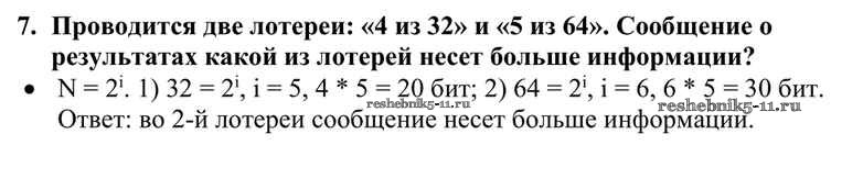Готовая домашняя работа с ответами по Информатике за 10 класс Семакин, Хеннер, Шеина Учебник Базовый уровень Бином 2017 ФГОС - §4. Измерение информации. Содержательный подход 7