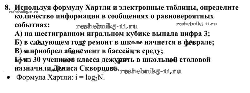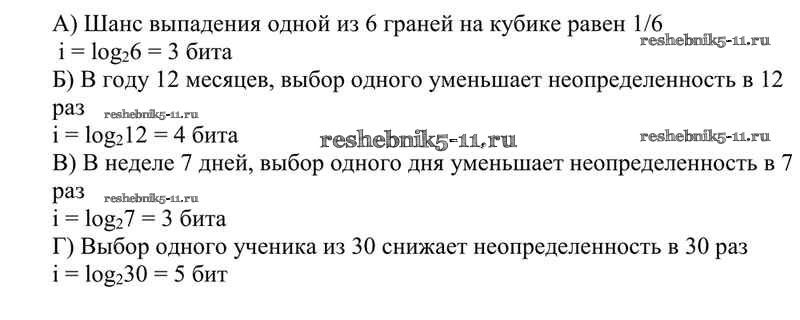Готовая домашняя работа с ответами по Информатике за 10 класс Семакин, Хеннер, Шеина Учебник Базовый уровень Бином 2017 ФГОС - §4. Измерение информации. Содержательный подход 8