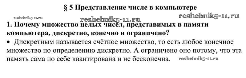 Готовая домашняя работа с ответами по Информатике за 10 класс Семакин, Хеннер, Шеина Учебник Базовый уровень Бином 2017 ФГОС - §5. Представление чисел в компьютере 1