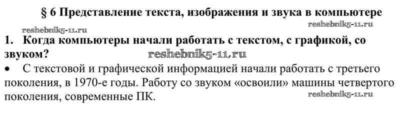 Готовая домашняя работа с ответами по Информатике за 10 класс Семакин, Хеннер, Шеина Учебник Базовый уровень Бином 2017 ФГОС - §6. Представление текста, изображения и звука 1
