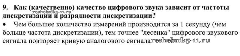 Готовая домашняя работа с ответами по Информатике за 10 класс Семакин, Хеннер, Шеина Учебник Базовый уровень Бином 2017 ФГОС - §6. Представление текста, изображения и звука 9