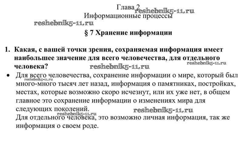 Готовая домашняя работа с ответами по Информатике за 10 класс Семакин, Хеннер, Шеина Учебник Базовый уровень Бином 2017 ФГОС - §7. Хранение информации 1