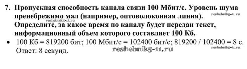 Готовая домашняя работа с ответами по Информатике за 10 класс Семакин, Хеннер, Шеина Учебник Базовый уровень Бином 2017 ФГОС - §8. Передача информации 7