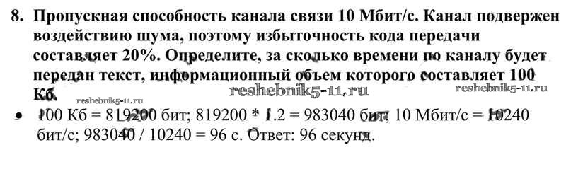 Готовая домашняя работа с ответами по Информатике за 10 класс Семакин, Хеннер, Шеина Учебник Базовый уровень Бином 2017 ФГОС - §8. Передача информации 8