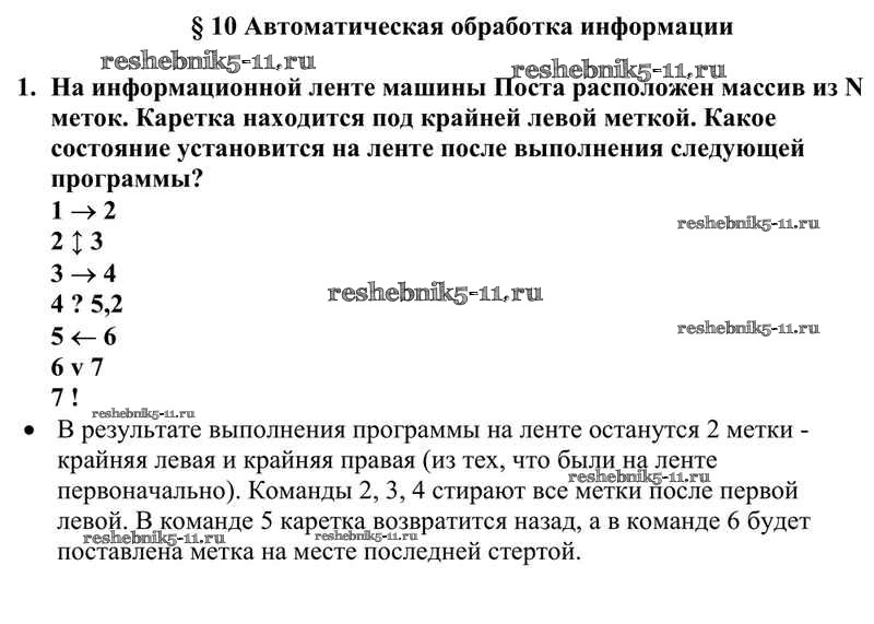 Готовая домашняя работа с ответами по Информатике за 10 класс Семакин, Хеннер, Шеина Учебник Базовый уровень Бином 2017 ФГОС - §10. Автоматическая обработка информации 1