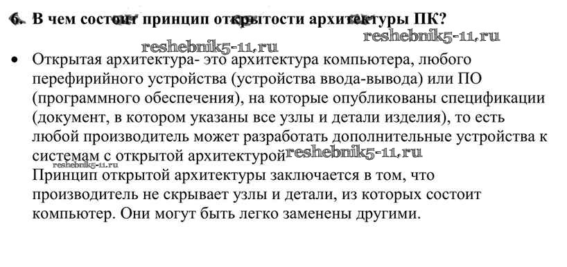 Готовая домашняя работа с ответами по Информатике за 10 класс Семакин, Хеннер, Шеина Учебник Базовый уровень Бином 2017 ФГОС - §11. Информационные процессы в компьютере 6