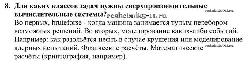 Готовая домашняя работа с ответами по Информатике за 10 класс Семакин, Хеннер, Шеина Учебник Базовый уровень Бином 2017 ФГОС - §11. Информационные процессы в компьютере 8
