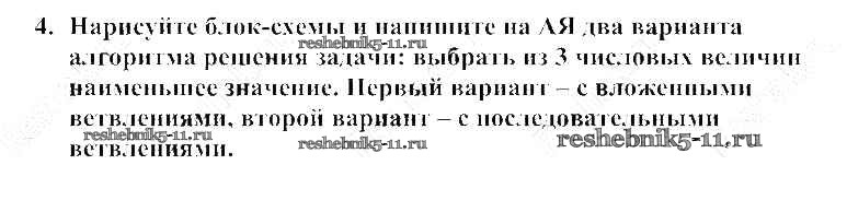 Готовая домашняя работа с ответами по Информатике за 10 класс Семакин, Хеннер, Шеина Учебник Базовый уровень Бином 2017 ФГОС - §13. Структура алгоритмов 4