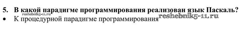 Готовая домашняя работа с ответами по Информатике за 10 класс Семакин, Хеннер, Шеина Учебник Базовый уровень Бином 2017 ФГОС - §14. Паскаль — язык структурного программирования 5