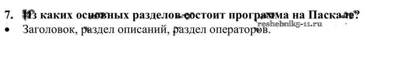 Готовая домашняя работа с ответами по Информатике за 10 класс Семакин, Хеннер, Шеина Учебник Базовый уровень Бином 2017 ФГОС - §14. Паскаль — язык структурного программирования 7