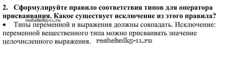 Готовая домашняя работа с ответами по Информатике за 10 класс Семакин, Хеннер, Шеина Учебник Базовый уровень Бином 2017 ФГОС - §17. Оператор присваивания, ввод и вывод данных 2