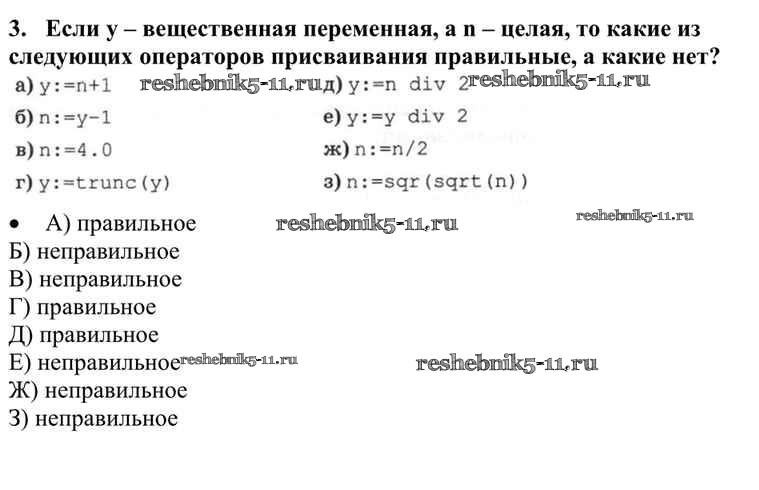 Готовая домашняя работа с ответами по Информатике за 10 класс Семакин, Хеннер, Шеина Учебник Базовый уровень Бином 2017 ФГОС - §17. Оператор присваивания, ввод и вывод данных 3
