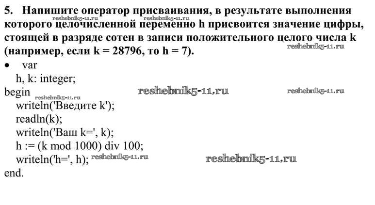 Готовая домашняя работа с ответами по Информатике за 10 класс Семакин, Хеннер, Шеина Учебник Базовый уровень Бином 2017 ФГОС - §17. Оператор присваивания, ввод и вывод данных 5