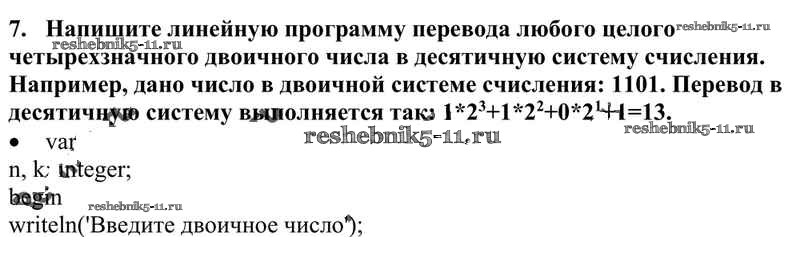 Готовая домашняя работа с ответами по Информатике за 10 класс Семакин, Хеннер, Шеина Учебник Базовый уровень Бином 2017 ФГОС - §17. Оператор присваивания, ввод и вывод данных 7