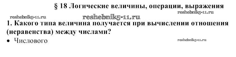 Готовая домашняя работа с ответами по Информатике за 10 класс Семакин, Хеннер, Шеина Учебник Базовый уровень Бином 2017 ФГОС - §18. Логические величины, операции, выражения 1
