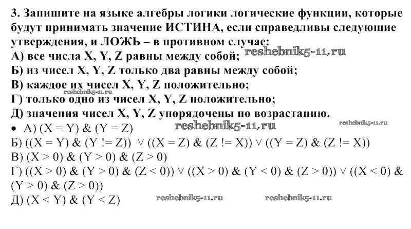 Готовая домашняя работа с ответами по Информатике за 10 класс Семакин, Хеннер, Шеина Учебник Базовый уровень Бином 2017 ФГОС - §18. Логические величины, операции, выражения 3