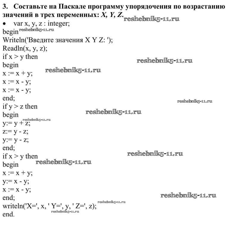 Готовая домашняя работа с ответами по Информатике за 10 класс Семакин, Хеннер, Шеина Учебник Базовый уровень Бином 2017 ФГОС - §19. Программирование ветвлений 3