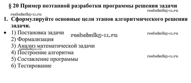 Готовая домашняя работа с ответами по Информатике за 10 класс Семакин, Хеннер, Шеина Учебник Базовый уровень Бином 2017 ФГОС - §20. Пример поэтапной разработки программы решения задачи 1