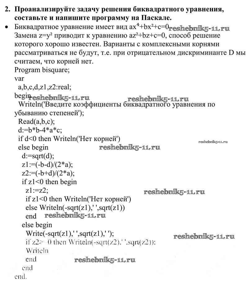 Готовая домашняя работа с ответами по Информатике за 10 класс Семакин, Хеннер, Шеина Учебник Базовый уровень Бином 2017 ФГОС - §20. Пример поэтапной разработки программы решения задачи 2