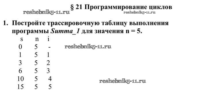 Готовая домашняя работа с ответами по Информатике за 10 класс Семакин, Хеннер, Шеина Учебник Базовый уровень Бином 2017 ФГОС - §21. Программирование циклов 1