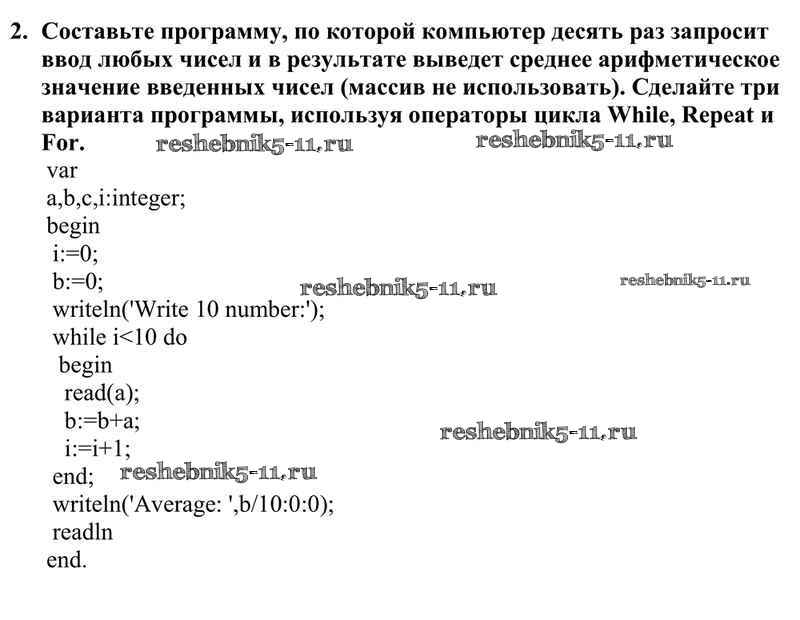 Готовая домашняя работа с ответами по Информатике за 10 класс Семакин, Хеннер, Шеина Учебник Базовый уровень Бином 2017 ФГОС - §21. Программирование циклов 2