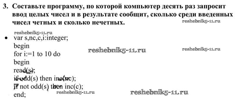 Готовая домашняя работа с ответами по Информатике за 10 класс Семакин, Хеннер, Шеина Учебник Базовый уровень Бином 2017 ФГОС - §21. Программирование циклов 3