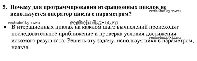 Готовая домашняя работа с ответами по Информатике за 10 класс Семакин, Хеннер, Шеина Учебник Базовый уровень Бином 2017 ФГОС - §22. Вложенные и итерационные циклы 5