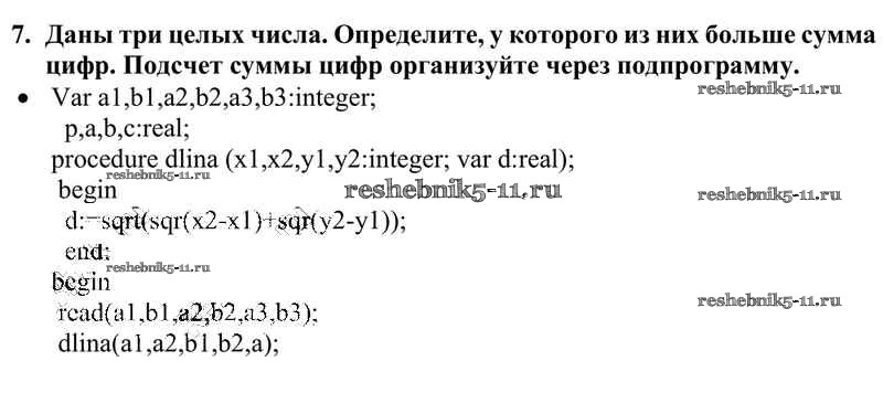 Готовая домашняя работа с ответами по Информатике за 10 класс Семакин, Хеннер, Шеина Учебник Базовый уровень Бином 2017 ФГОС - §23. Вспомогательные алгоритмы и подпрограммы 7