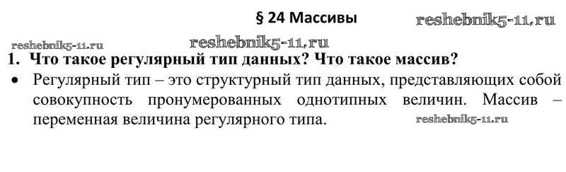 Готовая домашняя работа с ответами по Информатике за 10 класс Семакин, Хеннер, Шеина Учебник Базовый уровень Бином 2017 ФГОС - §24. Массивы 1