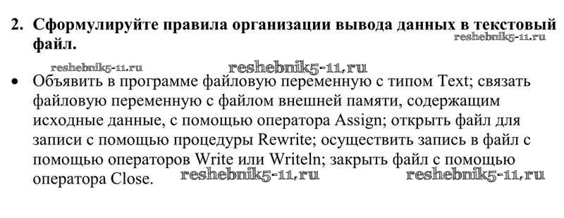 Готовая домашняя работа с ответами по Информатике за 10 класс Семакин, Хеннер, Шеина Учебник Базовый уровень Бином 2017 ФГОС - §25. Организация ввода и вывода данных с использованием файлов 2