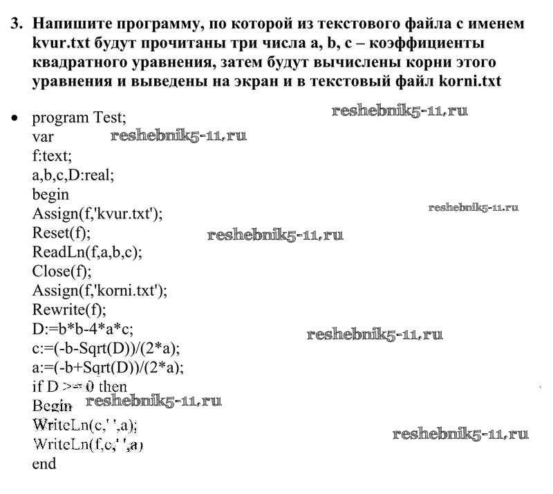 Готовая домашняя работа с ответами по Информатике за 10 класс Семакин, Хеннер, Шеина Учебник Базовый уровень Бином 2017 ФГОС - §25. Организация ввода и вывода данных с использованием файлов 3