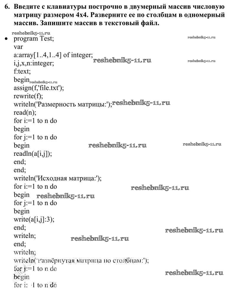 Готовая домашняя работа с ответами по Информатике за 10 класс Семакин, Хеннер, Шеина Учебник Базовый уровень Бином 2017 ФГОС - §25. Организация ввода и вывода данных с использованием файлов 6