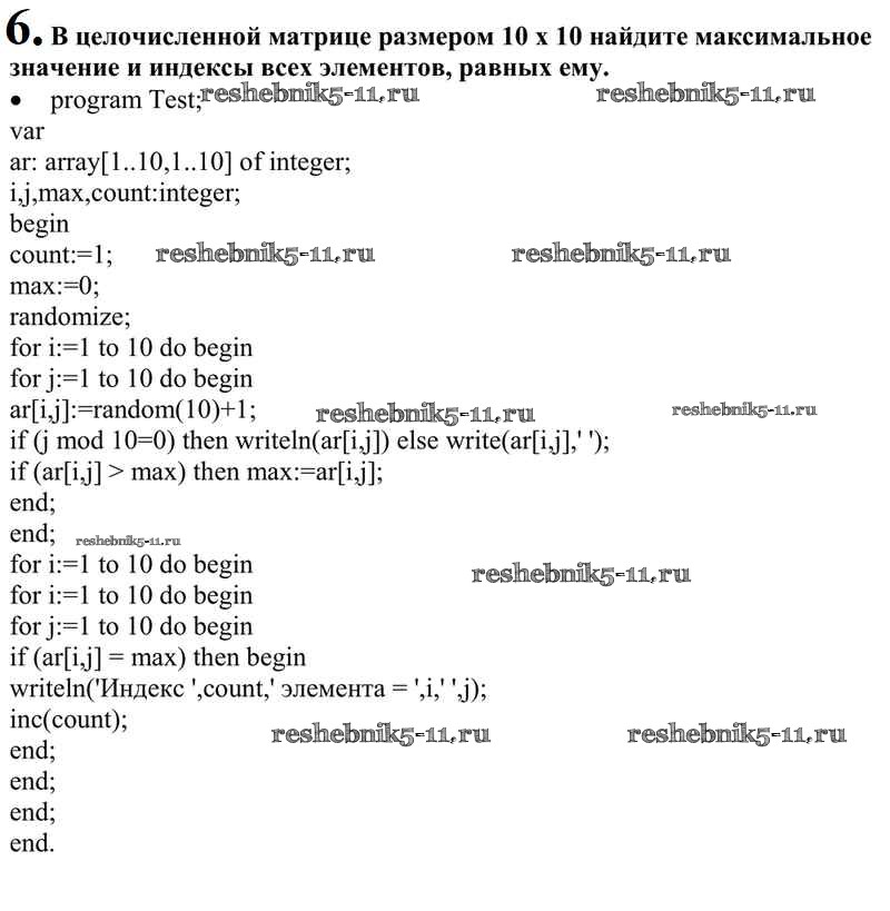 Готовая домашняя работа с ответами по Информатике за 10 класс Семакин, Хеннер, Шеина Учебник Базовый уровень Бином 2017 ФГОС - §26. Типовые задачи обработки массивов 6