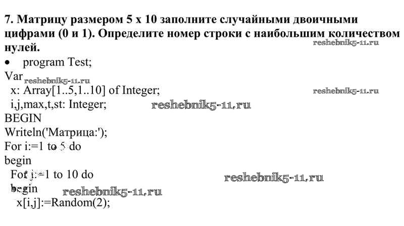 Готовая домашняя работа с ответами по Информатике за 10 класс Семакин, Хеннер, Шеина Учебник Базовый уровень Бином 2017 ФГОС - §26. Типовые задачи обработки массивов 7