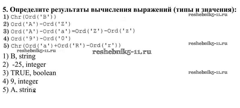 Готовая домашняя работа с ответами по Информатике за 10 класс Семакин, Хеннер, Шеина Учебник Базовый уровень Бином 2017 ФГОС - §27. Символьный тип данных 5