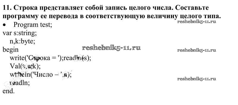 Готовая домашняя работа с ответами по Информатике за 10 класс Семакин, Хеннер, Шеина Учебник Базовый уровень Бином 2017 ФГОС - §28. Строки символов 11