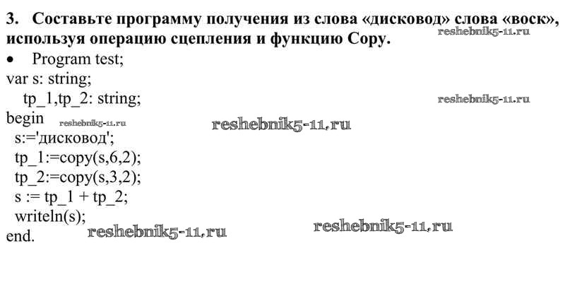 Готовая домашняя работа с ответами по Информатике за 10 класс Семакин, Хеннер, Шеина Учебник Базовый уровень Бином 2017 ФГОС - §28. Строки символов 3