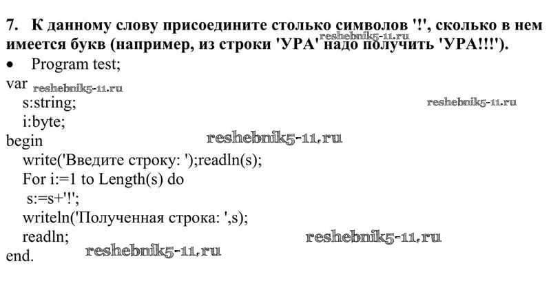 Готовая домашняя работа с ответами по Информатике за 10 класс Семакин, Хеннер, Шеина Учебник Базовый уровень Бином 2017 ФГОС - §28. Строки символов 7