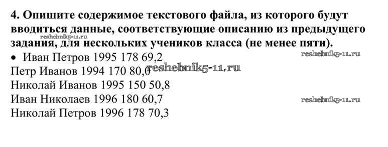 Готовая домашняя работа с ответами по Информатике за 10 класс Семакин, Хеннер, Шеина Учебник Базовый уровень Бином 2017 ФГОС - §29. Комбинированный тип данных 4