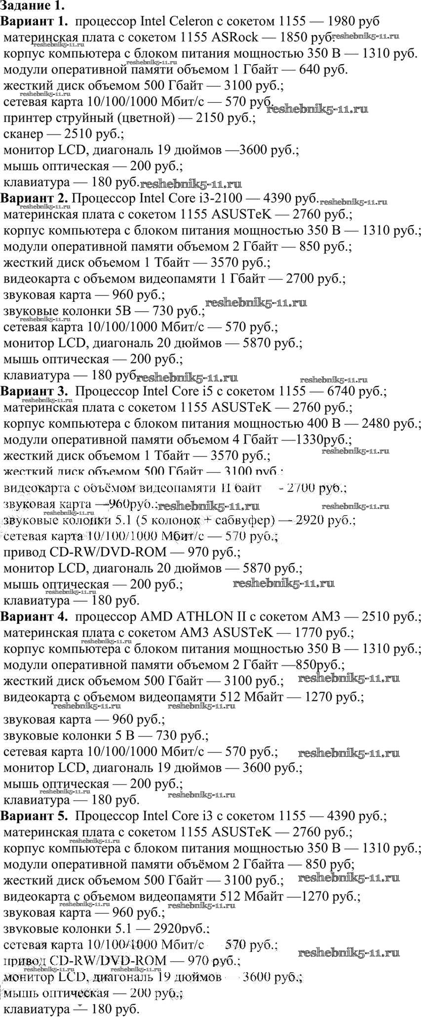 Готовая домашняя работа с ответами по Информатике за 10 класс Семакин, Хеннер, Шеина Учебник Базовый уровень Бином 2017 ФГОС - Работа 2.3. Проектное задание. Выбор конфигурации компьютера 1