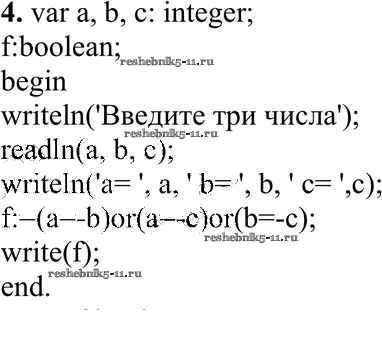 Готовая домашняя работа с ответами по Информатике за 10 класс Семакин, Хеннер, Шеина Учебник Базовый уровень Бином 2017 ФГОС - Работа 3.2. Программирование логических выражений 4