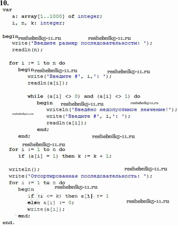 Готовая домашняя работа с ответами по Информатике за 10 класс Семакин, Хеннер, Шеина Учебник Базовый уровень Бином 2017 ФГОС - Работа 3.6. Программирование обработки одномерных массивов 10