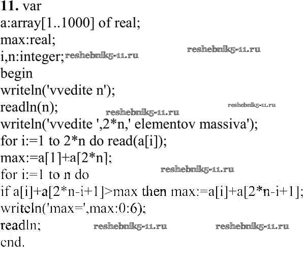 Готовая домашняя работа с ответами по Информатике за 10 класс Семакин, Хеннер, Шеина Учебник Базовый уровень Бином 2017 ФГОС - Работа 3.6. Программирование обработки одномерных массивов 11