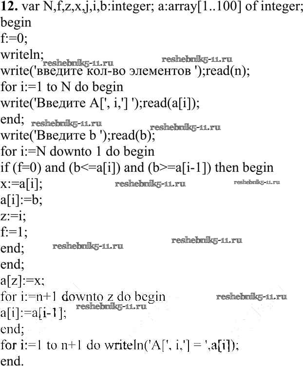 Готовая домашняя работа с ответами по Информатике за 10 класс Семакин, Хеннер, Шеина Учебник Базовый уровень Бином 2017 ФГОС - Работа 3.6. Программирование обработки одномерных массивов 12