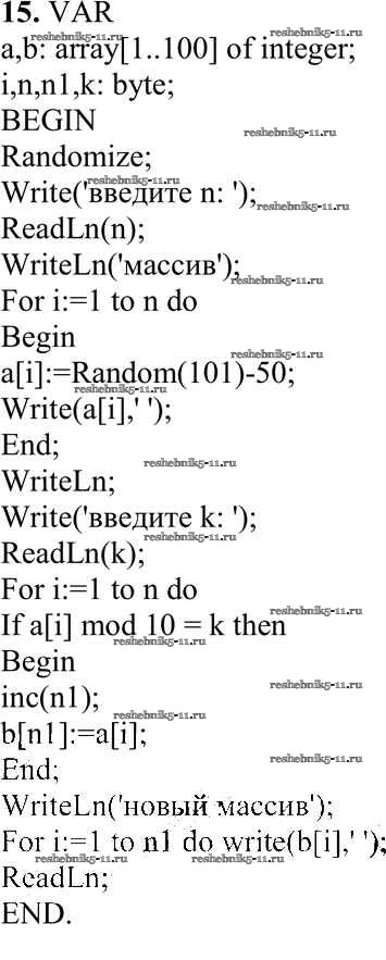 Готовая домашняя работа с ответами по Информатике за 10 класс Семакин, Хеннер, Шеина Учебник Базовый уровень Бином 2017 ФГОС - Работа 3.6. Программирование обработки одномерных массивов 15