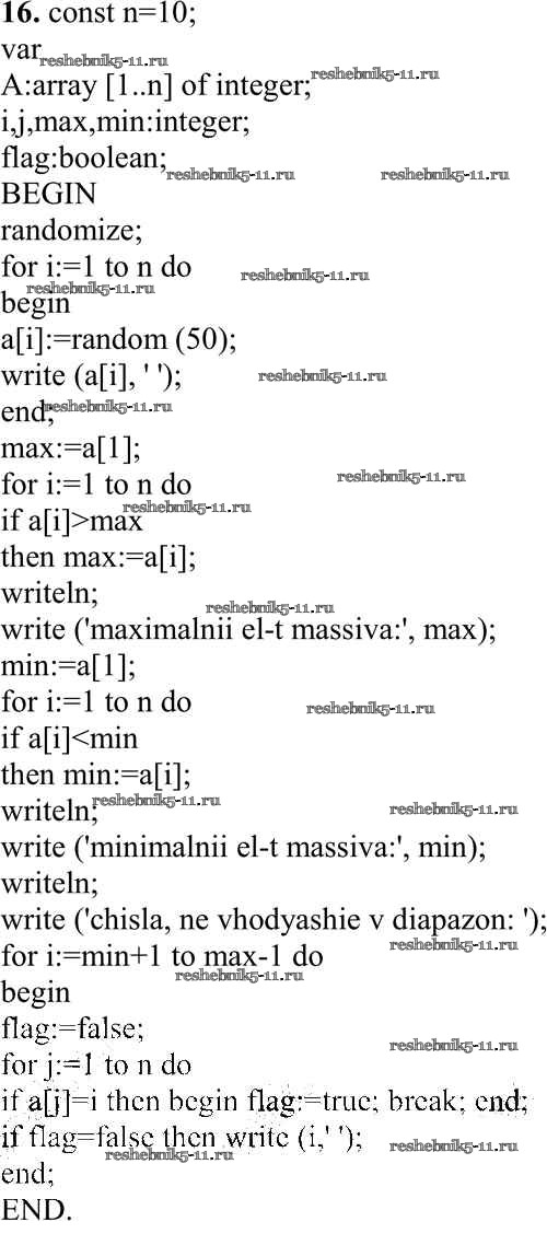 Готовая домашняя работа с ответами по Информатике за 10 класс Семакин, Хеннер, Шеина Учебник Базовый уровень Бином 2017 ФГОС - Работа 3.6. Программирование обработки одномерных массивов 16