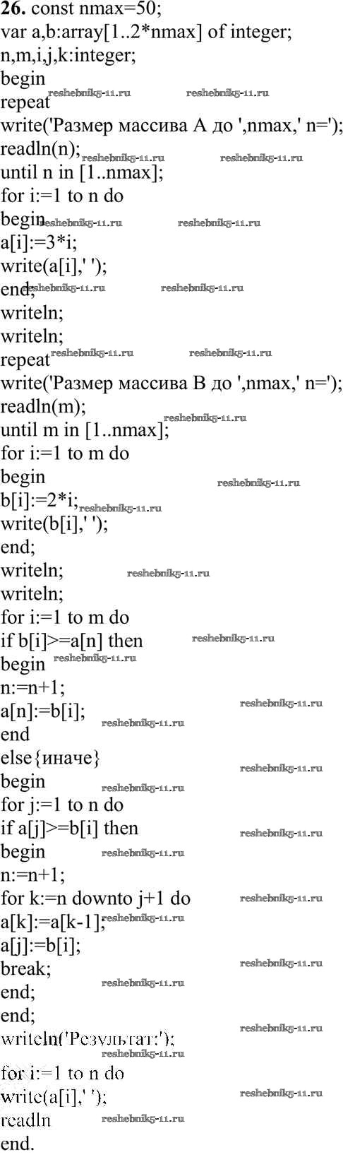 Готовая домашняя работа с ответами по Информатике за 10 класс Семакин, Хеннер, Шеина Учебник Базовый уровень Бином 2017 ФГОС - Работа 3.6. Программирование обработки одномерных массивов 26